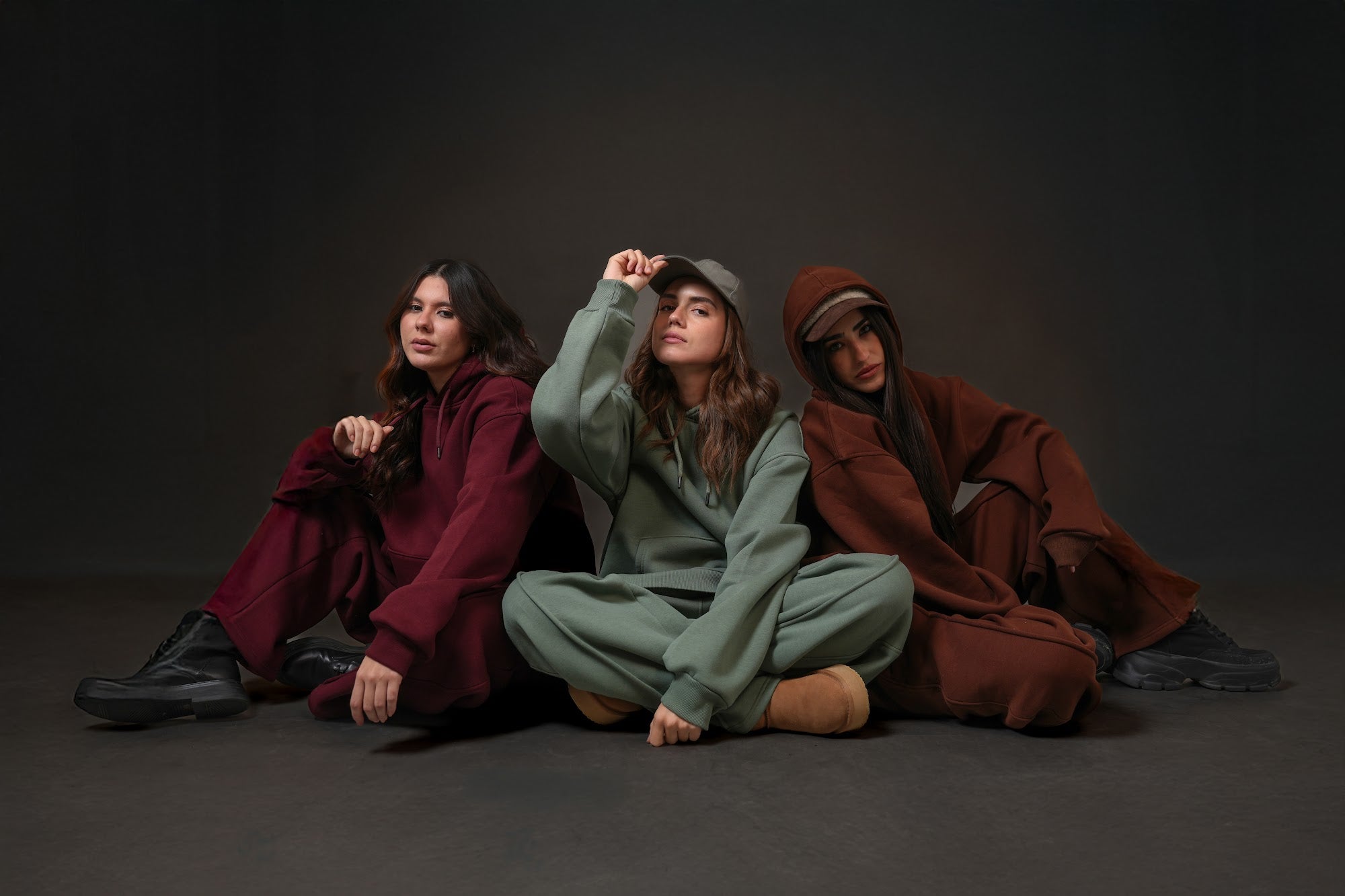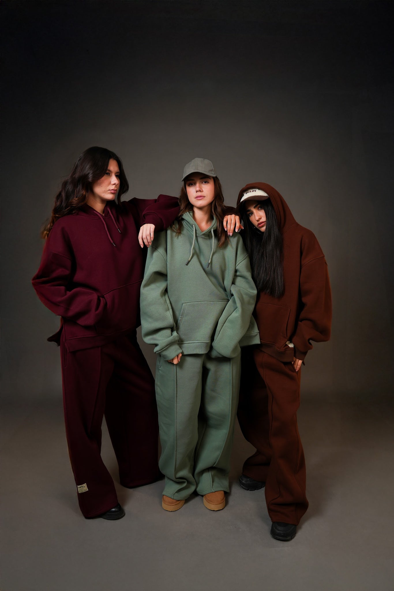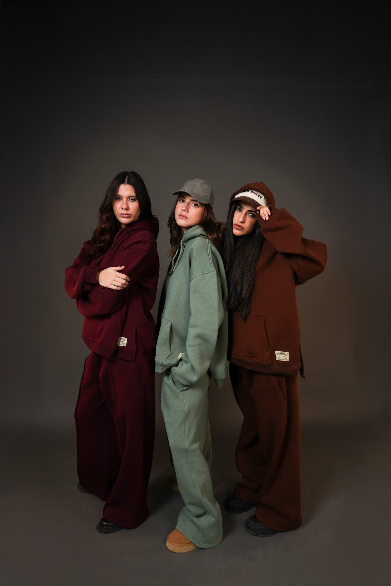 Perfect for cozy days, streetwear looks, and effortless layering, this set comes in rich winter tones: Deep Burgundy, Sage Green, black, burgundy and Cocoa Brown.