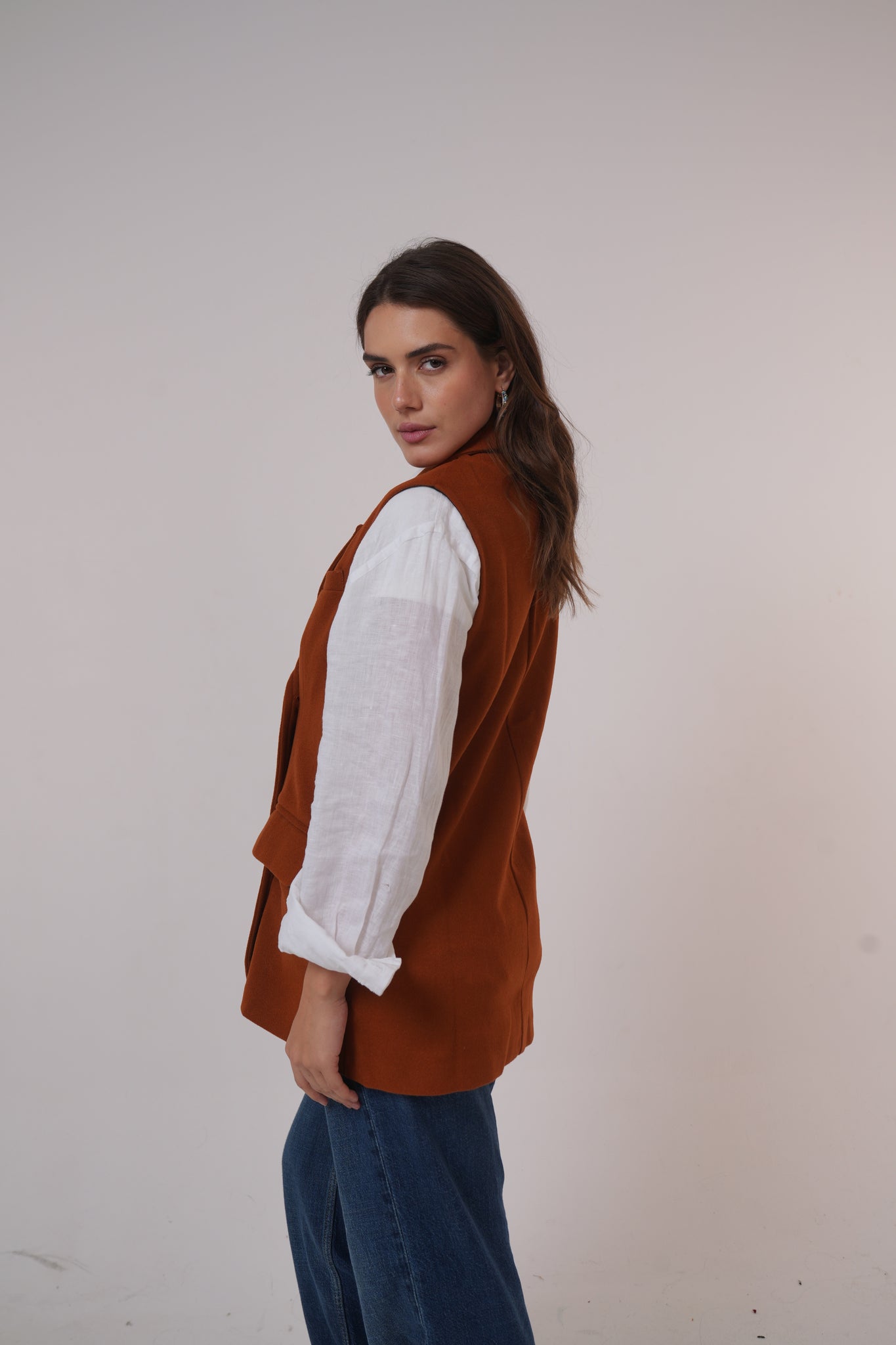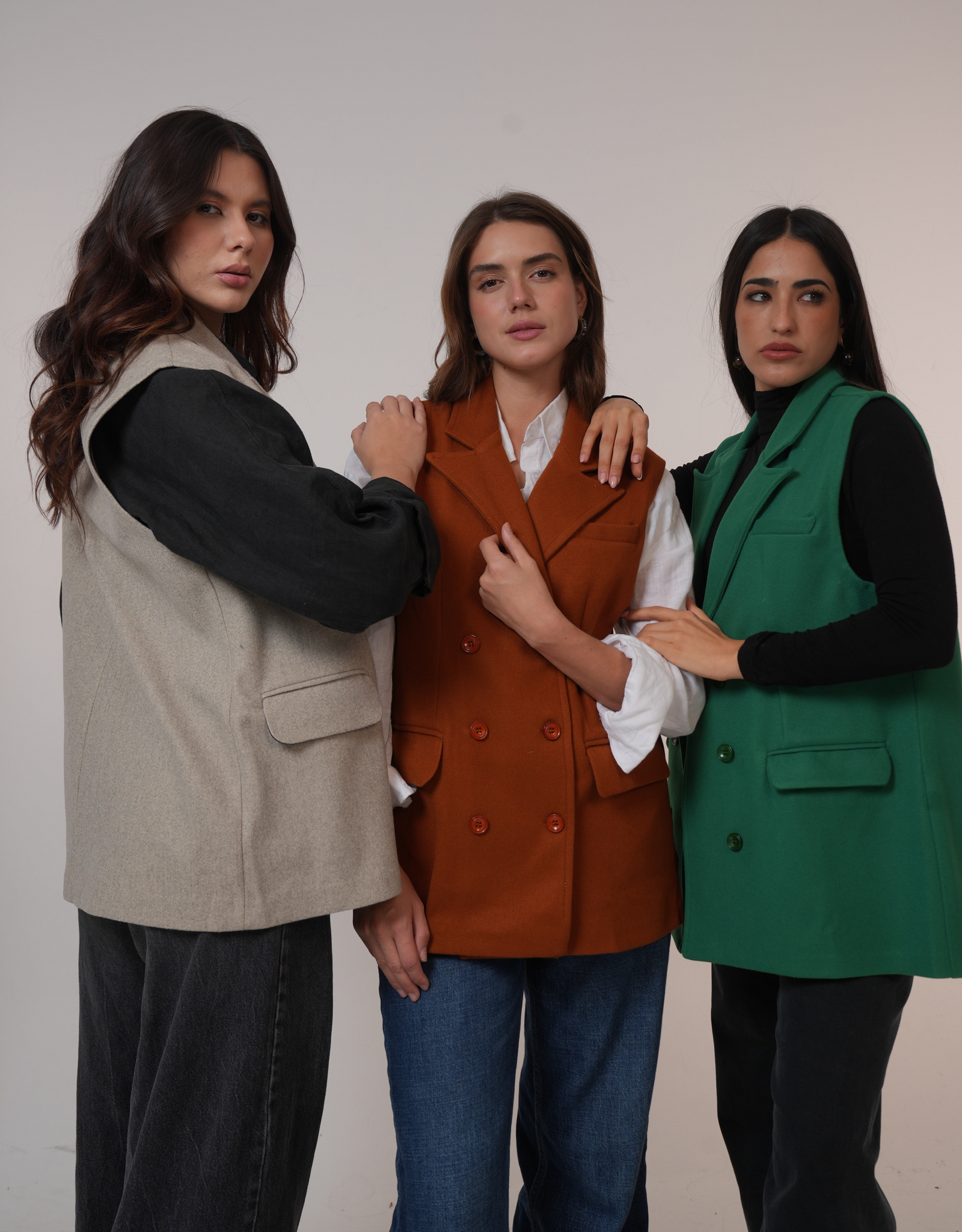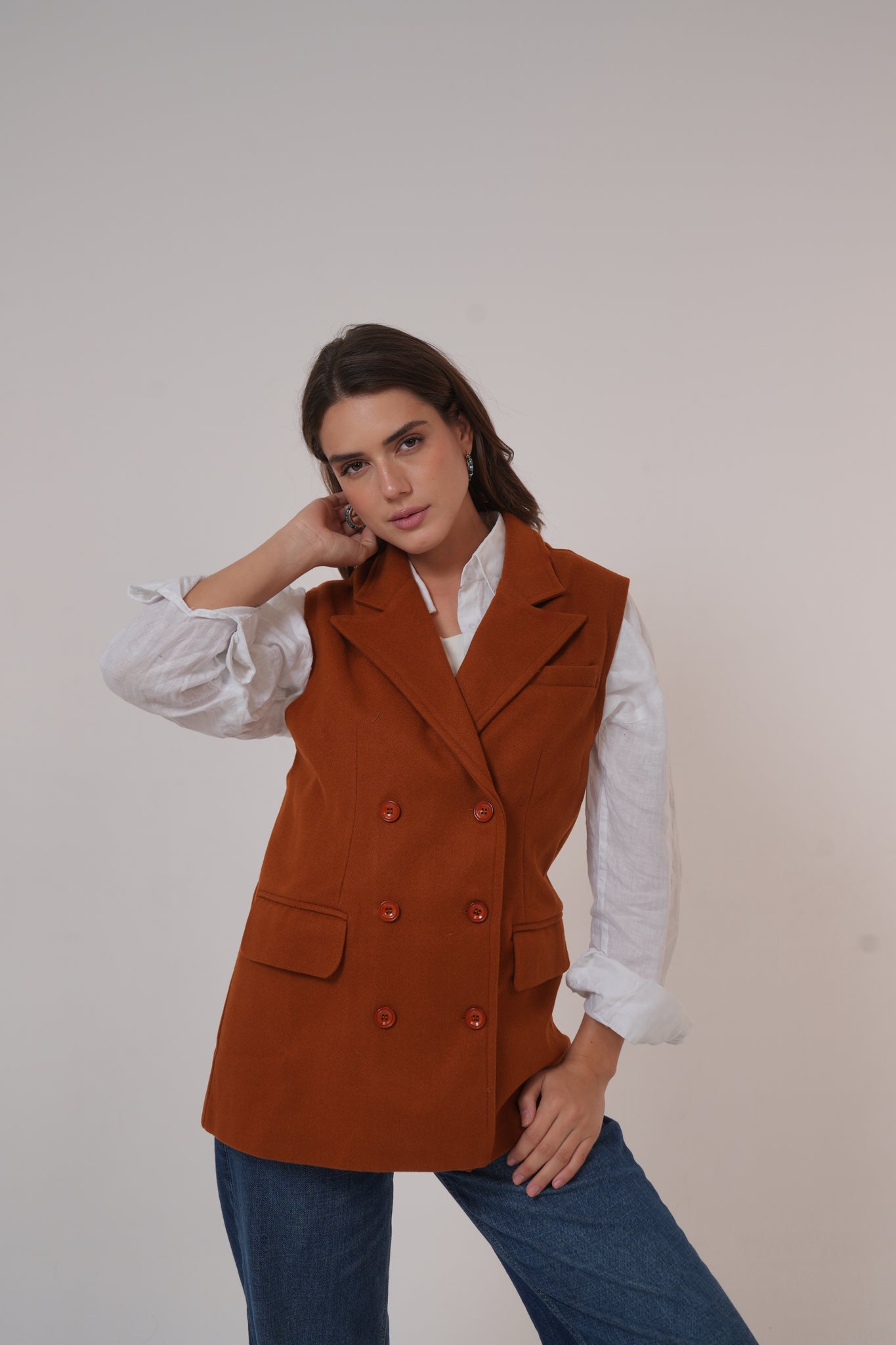 Introducing our Double-Breasted Wool Vest — the perfect statement layer for your fall/winter wardrobe. Designed with a structured silhouette that gives elegance and warmth without compromising on comfort.
